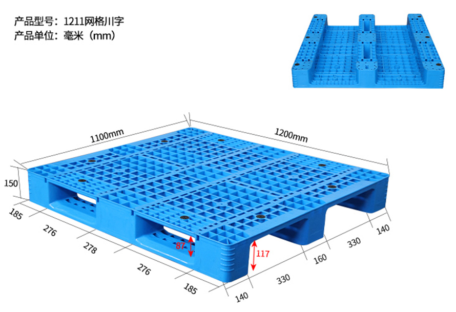 1411網(wǎng)格川字托盤 | 1400*1100*150 | 16.5 | 1.5T | 5T | 10 |